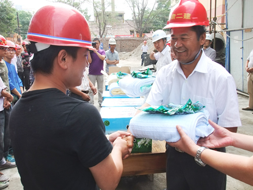 夏日炎炎,一線職工們的生產(chǎn)生活情況始終牽掛在甘肅建投領(lǐng)導(dǎo)們的心頭。8月上旬,甘肅建投副董事長(zhǎng)、黨委書記宋忠慶,黨委副書記、紀(jì)委書記張育謙,工會(huì)主席尹克云等領(lǐng)導(dǎo)同志深入一線施工現(xiàn)場(chǎng),看望了奮戰(zhàn)在烈日酷暑下的一線干部、職工群眾,并為他們送去了茶葉、毛巾等防暑降溫用品,給他們送上一份份“清涼”的問(wèn)候。
